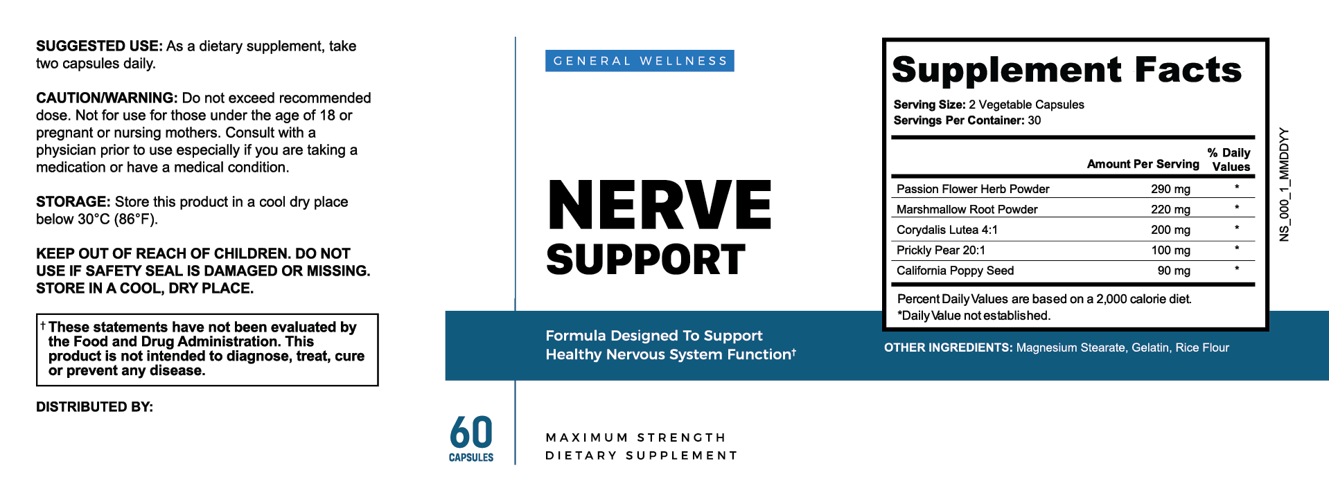 Nerve Support provides a targeted blend of B-vitamins, alpha lipoic acid, and herbal extracts to support healthy nerve function. Helps maintain nerve comfort and promotes a healthy nervous system response.
